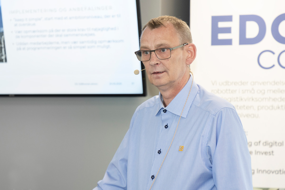 Jens Pedersen fra Odense Robotics, der også var tovholder på arrangementet, startede dagen med en informativ velkomst – og særligt budskabet: "Hvis I ikke kommer i gang nu, så er I allerede bagud" gav genlyd. Idéen om at små tiltag i forhold til automation og robotteknologi er bedre end ikke at komme i gang, var noget deltagerne kunne se sig selv i. Der er ingen tvivl om, at Jens mener, at nordjyske virksomheder bør investere endnu mere i den digitale og teknologiske udvikling, da han desværre kan se, at området i øjeblikket ligger bagest i feltet, hvis du sammenligner med Danmark som helhed.