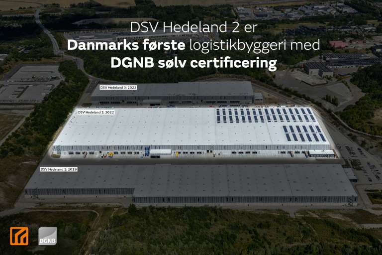 DSV Hedeland 2, på 95.000 kvadratmeter, er det første logistikbyggeri i Danmark, der har opnået DGNB Sølv Certificering.